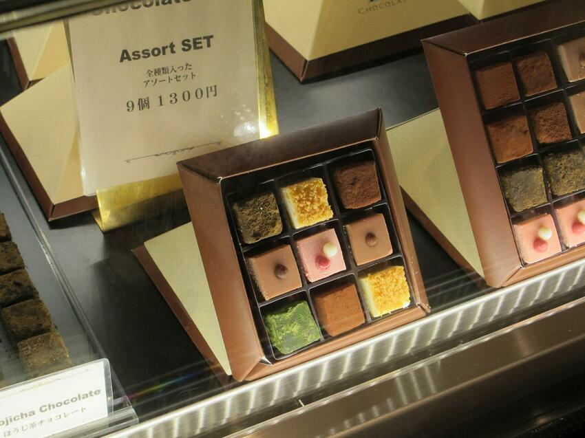 冬季賣生巧克力[生チョコ専門店 さんかくショコラ],提供6種類生巧克力①苦味②原味③甜味④草莓⑤奶油卡士達⑥抹茶⑦焙茶