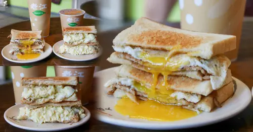 ▼招牌必吃的人氣經典神醬肉燥吐司,厚厚的剖面看起來份量十足,以奶油煎過的香噴噴奶香山形吐司,夾入秘製的神醬肉燥、雞蛋和生菜,張大嘴咬下鹹香的香氣撲鼻而來,肉燥中有著花生醬和紫洋蔥的甜味,搭配爽脆多汁的生菜,整體吃起來不會太油膩。