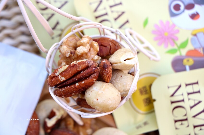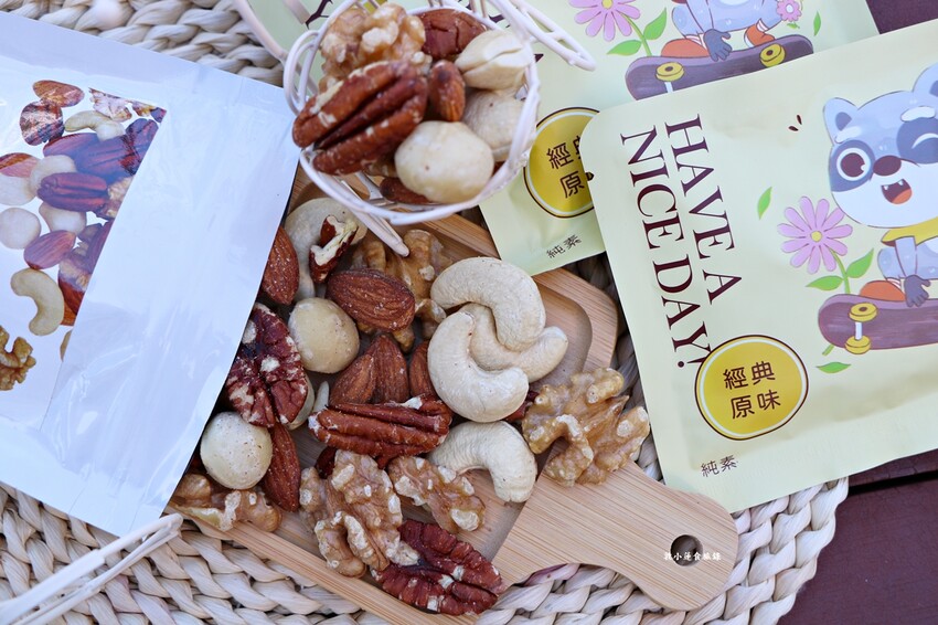 包含夏威夷豆、核桃、胡桃、腰果、杏仁果,營養價值高,重點茹素者可食