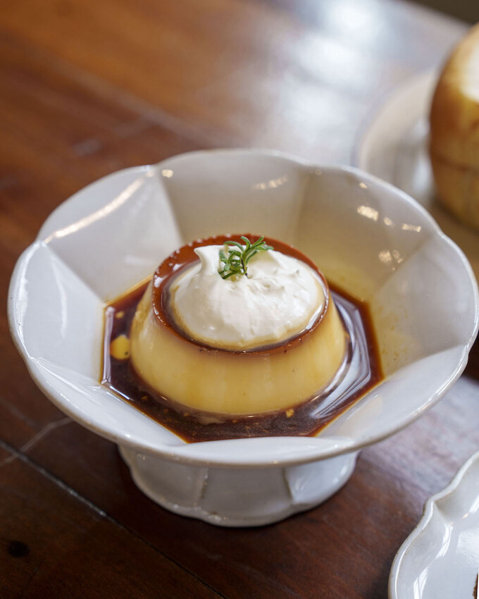 還有這款手工布丁,ㄉㄨㄞ唷ㄉㄨㄞ唷的看起來非常療癒。布丁淋上微苦焦糖,以及輕盈又輕甜的鮮奶油,用湯匙舀上一小口放入嘴裡,齁~~這個古溜又帶有層次的滋味,讓人捨不得把它吃完。
