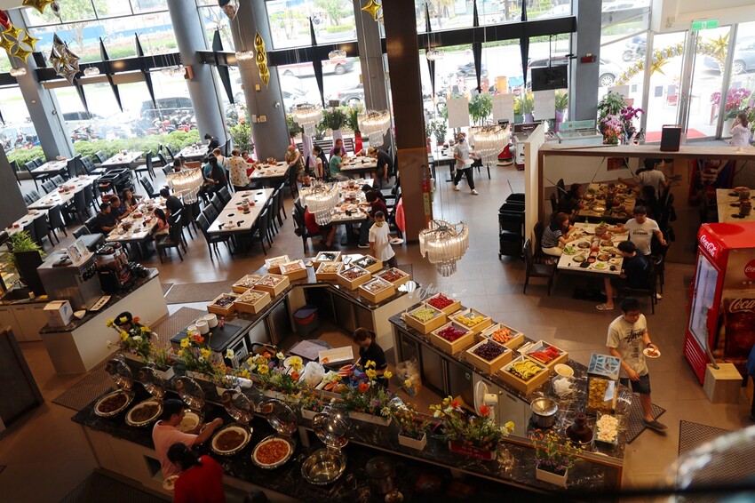 這天我們被安排在二樓,由上往下看,餐檯可盡收眼底,而且後來用餐時間整個一樓幾乎都客滿了!