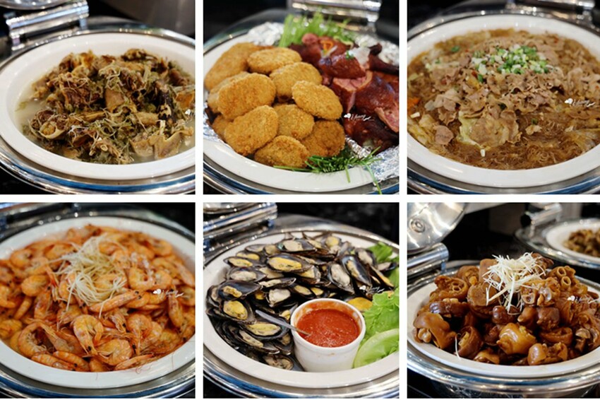 豬腳、粉絲煲、咖哩可樂餅、德國豬腳、白灼蝦、淡菜等。