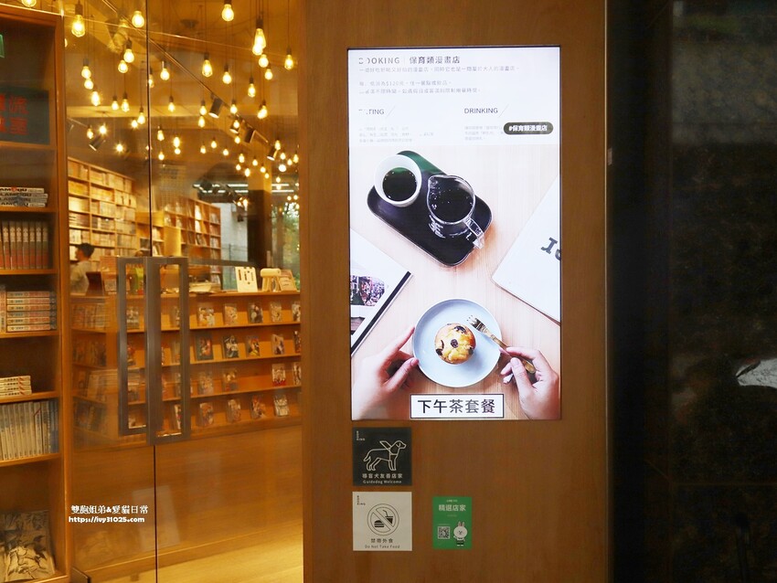 booking保育類漫畫店低消120起,你可以單點飲品或式下午茶套餐,也是導盲犬友善店家及LINE 精選店家之一。