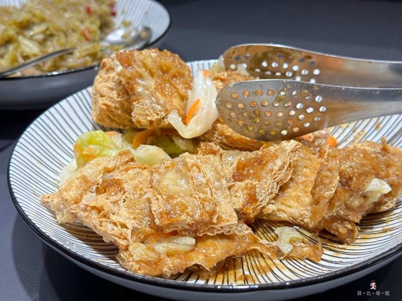 蒜蓉炸豆皮配上泡菜的組合,很開胃!