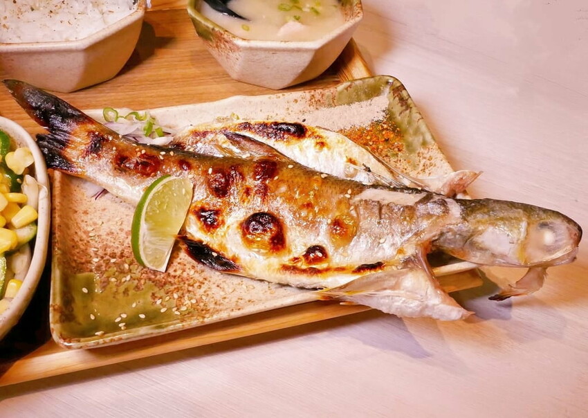 如果不吃生魚片的朋友. 超級推薦搭配熟食烤物.像是這道《塩烤午仔魚》 肉質口感非常的細嫩. 師傅將魚烤的好美也熟度剛剛好.享受鮮美與午仔魚同時再搭配清爽美味的配菜/沙拉/豆腐及營養順口的鮭魚味噌湯. 會超有飽足感!