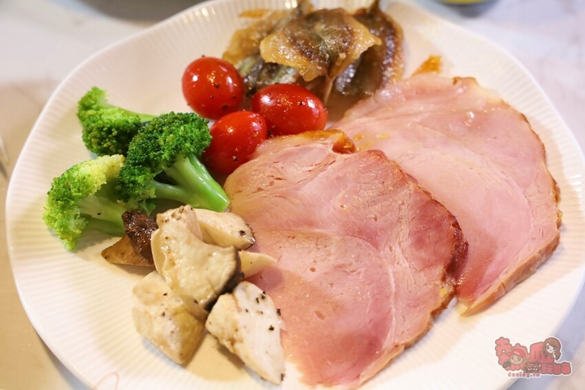 爐烤肋眼沙朗牛排和爐烤蜜汁火腿豬排也是我每次來都一定會拿的餐點,蜜汁火腿豬排豬排其實不用添加任何醬料就很夠味了,肥瘦適中吃起來很過癮~