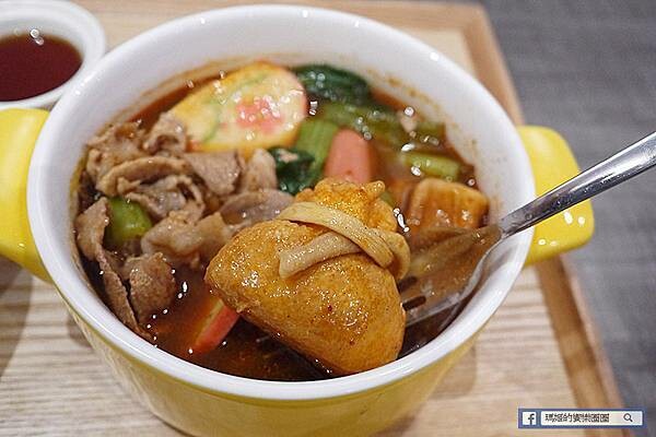 個人的小火鍋份量看起來不少,可搭配白飯或烏龍麵,我選擇了我愛的烏龍麵來搭配。
