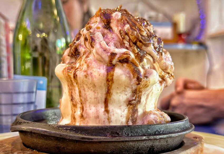 ●招牌酒香鐵板冰淇淋