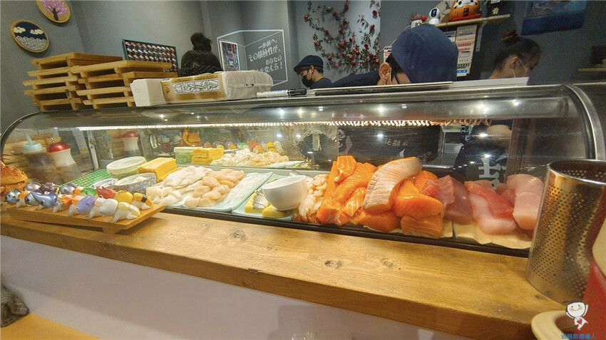 師傅的料理台的冷藏櫃內放了許多新鮮魚貨,看得出來都是製作日式料理的好食材