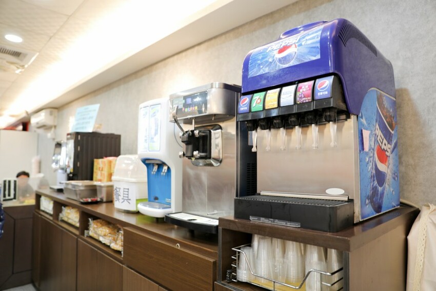 現在這種小火鍋店的自助吧都很精彩,咖啡、氣泡飲料、霜淇淋機等通通有…