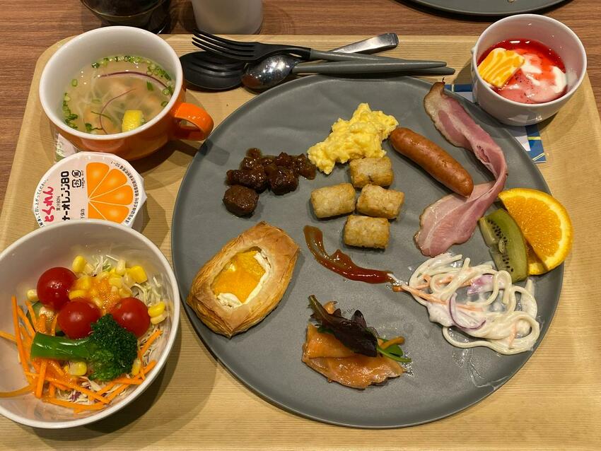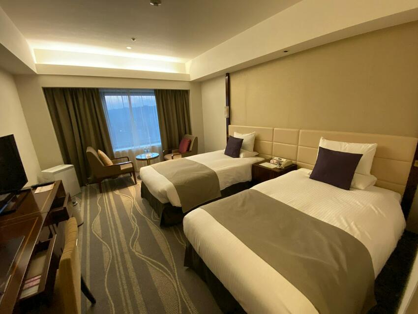 有兩個出入口,阪急神戸線「神戸三宮駅」直結(東改札口)。新幹線「新神戸駅」地下鉄「三宮駅」(約3分)下車、阪急連絡口2階直結。早餐位於高空酒吧場地,有三款早餐可以選擇。房內有按摩椅。因與鐵路共構,房內還是聽得到列車聲音。
