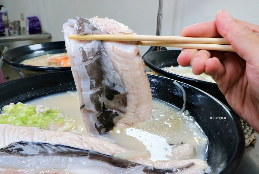 欣漁翁海產粥的虱目魚肉是無刺的魚肉可以很放心的吃它,魚肉很鮮甜能感受到虱目魚本身的滋味