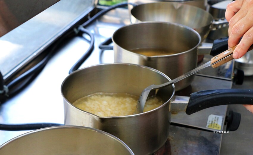 欣漁翁的粥是現挖白飯再倒入高湯熬煮,很多人以為是飯湯,其實不是,是介於是粥和飯湯中間