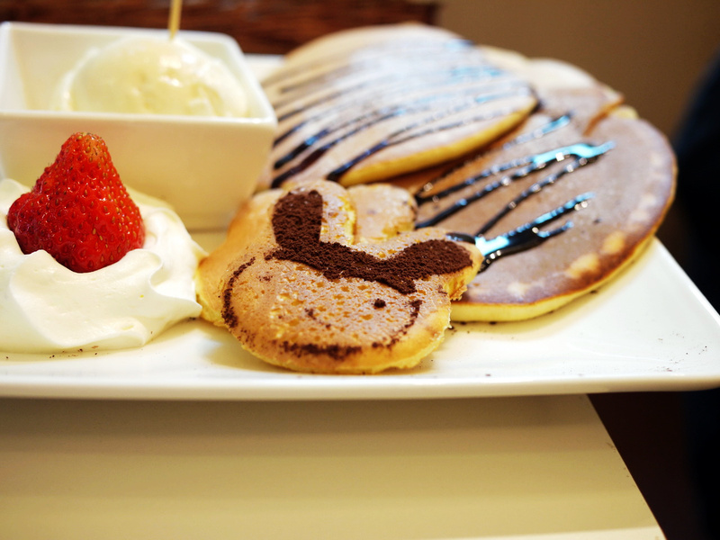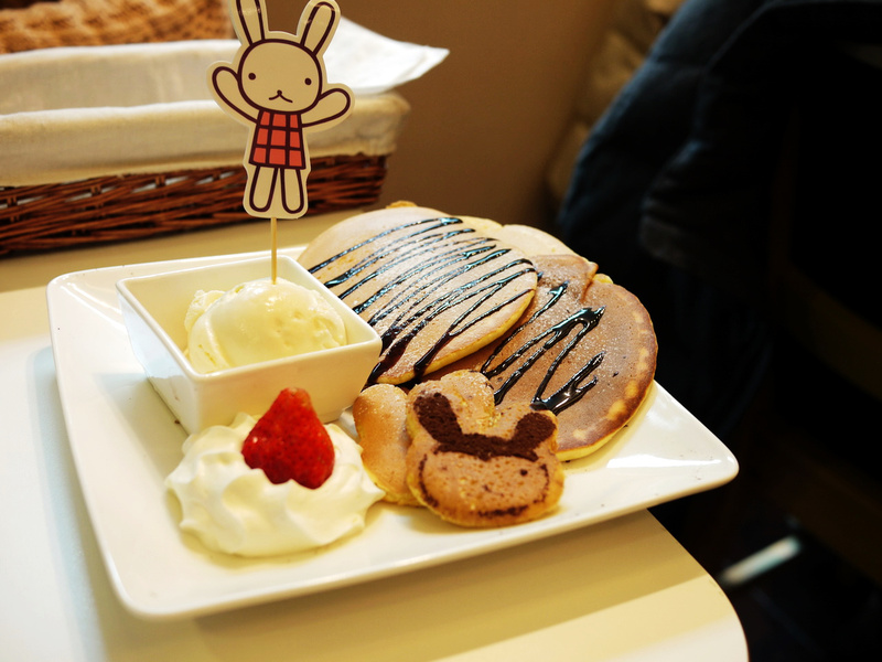 這邊的鬆餅是煎鍋鬆餅,有沒有看到直接把黑兔妹的連直接塗到鬆餅上~~