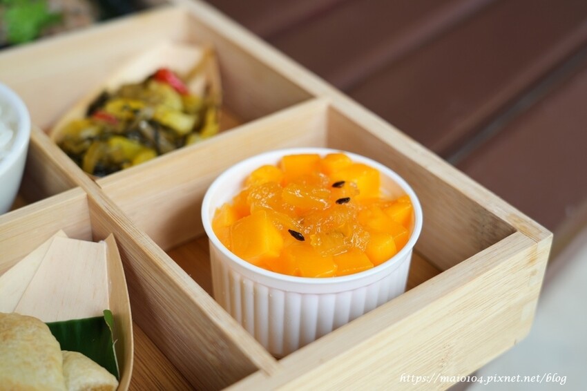 上面有新鮮芒果,還有鳳梨+百香果的果醬