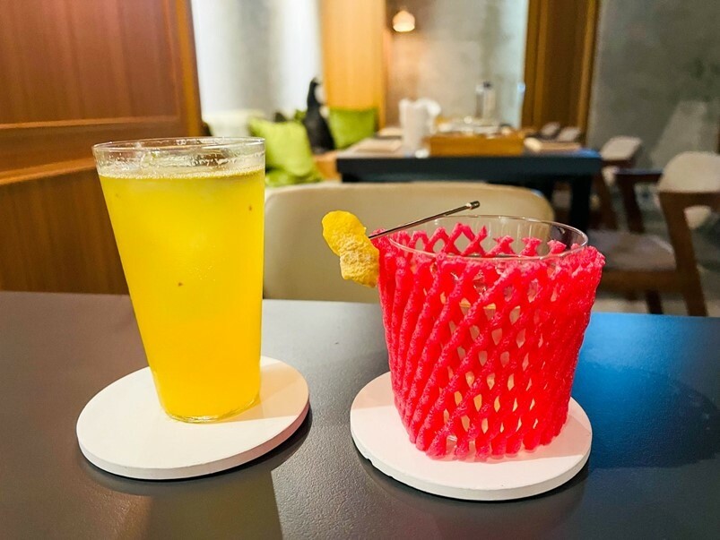 無酒精是鳳梨金萱,就是想像中的樣子,不過在這炎炎夏日,一入座來這一杯沁涼的鳳梨金萱確實相當消暑,微酸微甜相當不錯