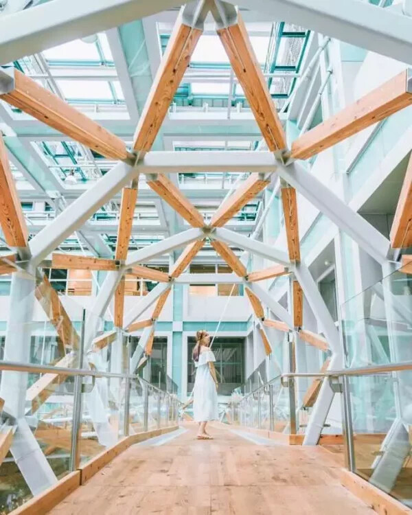 超好玩的科教館可不是「小朋友專利」,大朋友來這裡也能拍好拍滿!位在九樓的透明空橋超夯,是館內的人氣網美景點。想走透明天空步道,不必再千里迢迢跑個老遠,在台北的科教館就玩得到!以強化玻璃、鋼構造、木建材打造的蜿蜒空橋,有9層樓高,造型上採取曲線環狀的結構力學設計,其中有幾段腳底透明,走來有種步步驚心的刺激感,還可以一邊透過大面落地窗眺望風景,心臟大顆的人一定要挑戰看看!