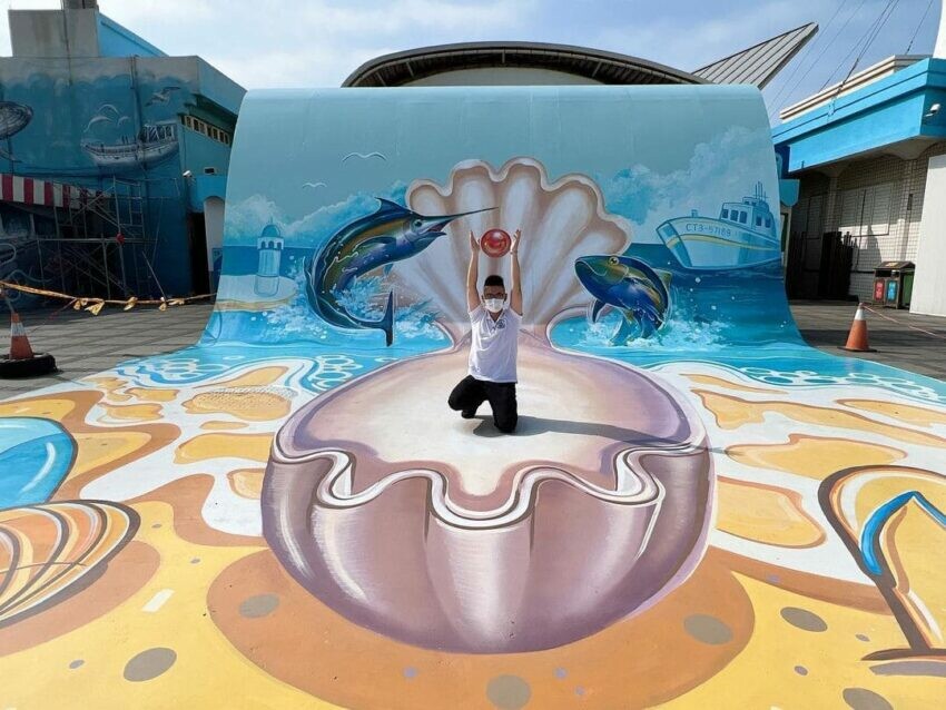 來到梧棲漁港,第一眼便注意到的,就是那色彩鮮豔、漂亮又逼真的3D立體彩繪以及地中海燈塔了。吸睛的大型彩繪造型壁畫,讓人輕鬆就可以拍出可愛又逗趣的互動式照片。後面的「貝塔之光」燈塔,是由陳舊的水塔改建而成,藍白色的色彩組合,充滿浪漫的地中海風情,這裡多了一股夏日情調,也是來到梧棲漁港的最佳打卡景點。