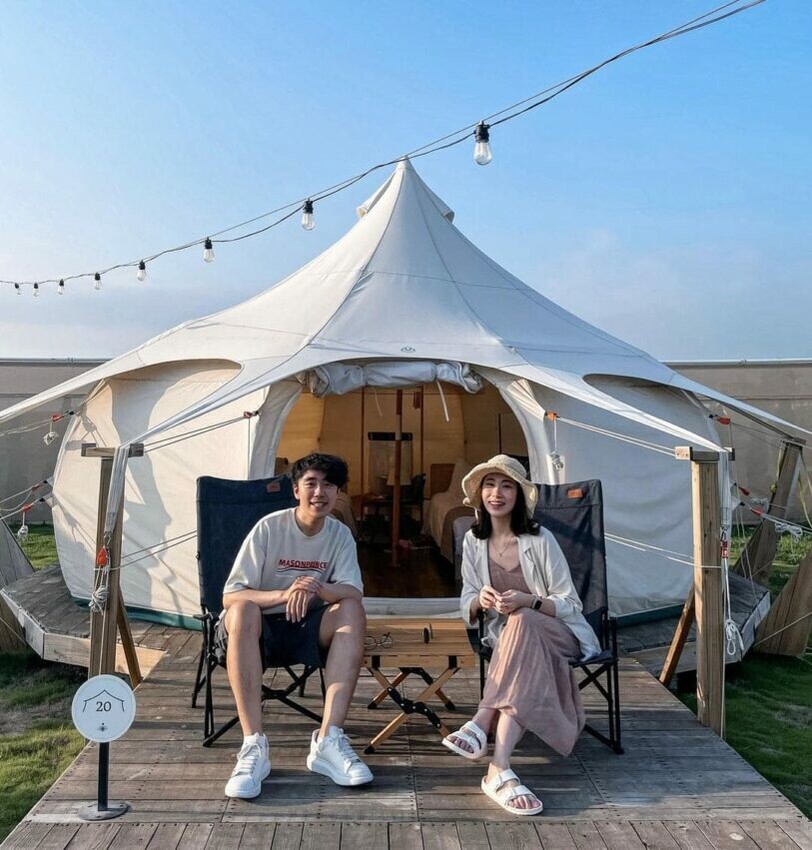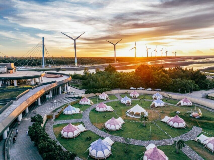 在號稱擁有最美夕陽景色的高美溼地旁,是全台唯一的濕地生態豪華露營場地。得天獨厚的自然環境,讓美麗的濕地、風景都盡收眼底。一泊二食的服務,讓你不用準備露營用具,也不用擔心餐點。在豪華帳篷裡床、冷氣、燈具等家具等一應俱全,晚餐後還可以報名生態導覽活動,完全是懶人露營的極致,只要好好的享受這一刻就好。