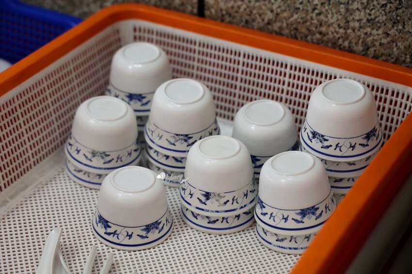 吃港式燒臘配一杯解膩的茶水,杯子上的花紋隨著年代以久也模糊了!現在大部份的燒臘店,大部份都是紅茶機。這茶水標備,果然是道地香港師傅帶來的習慣。