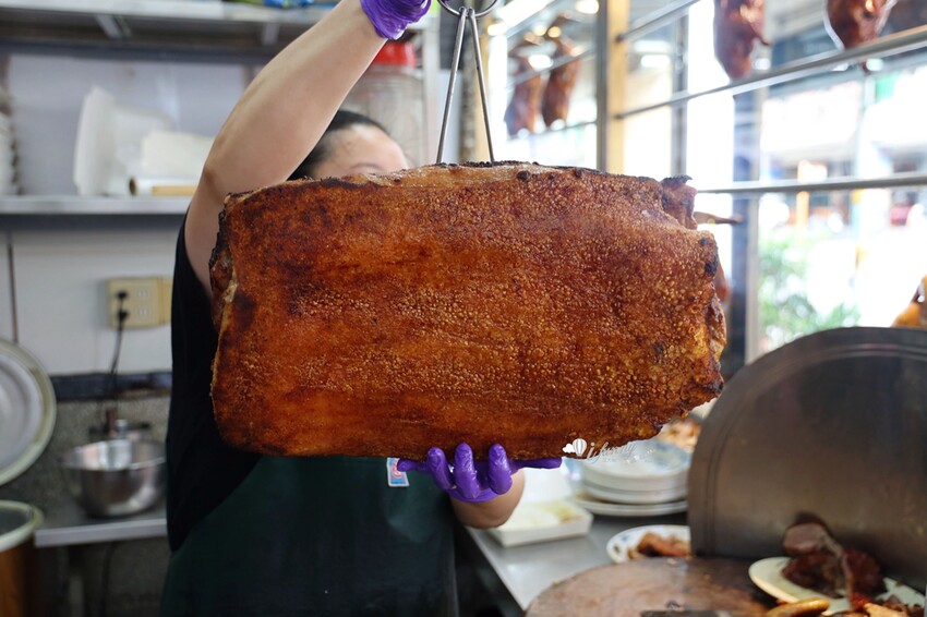可能我們到的時間已過午餐尖峰時間,也正是廚房在準備下個餐期的時間,此時竟有剛出爐的化皮燒肉,是不是看起來超好吃的!