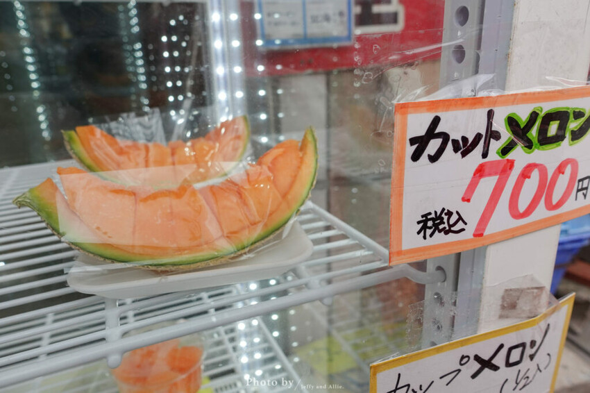 看到好多人來小樽都有吃哈密瓜,哈密瓜在日本似乎是奢華水果,整顆不便宜(有看到近千元台幣的),淺嚐吃切片的還可以,一片700日圓。在北海道玩的14天裡,札幌、函館、小樽等知名的觀光區,幾乎都可以看到哈密瓜的身影,好像也不一定要在小樽吃。觀光區的哈密瓜都有特別切塊,用牙籤就可以插起來吃,價格也相對高。如果想找便宜一點的哈密瓜,可以到超市裡看看,不過就只有切片沒切塊,要自己啃啦。