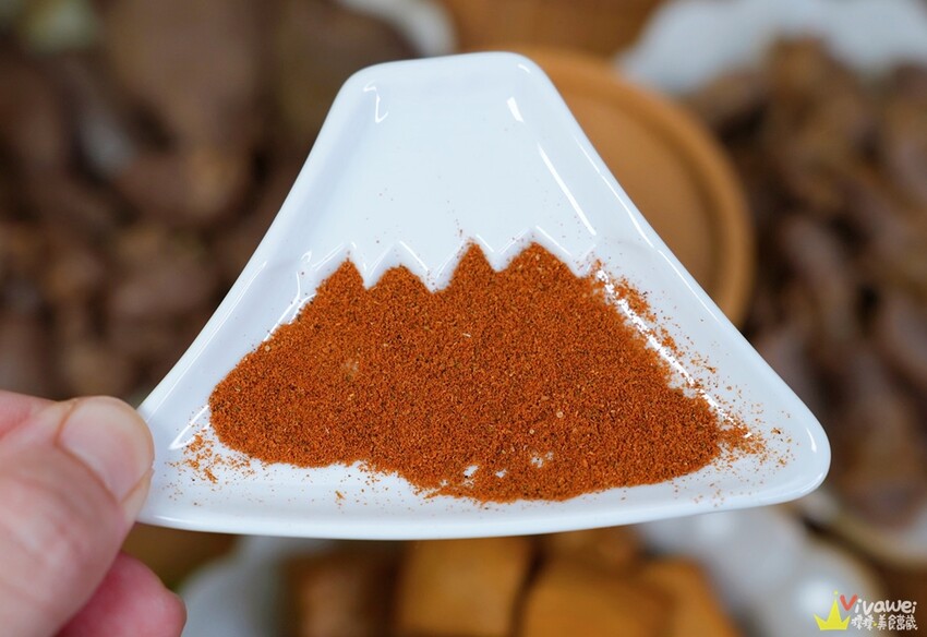 ▲飽滿厚實的豆干排排站好,外層有淡淡的煙燻香氣,口感細緻軟嫩,吃起來清爽不油膩!若比較重口味的人,建議可以加店家自製的辣粉會更夠味!