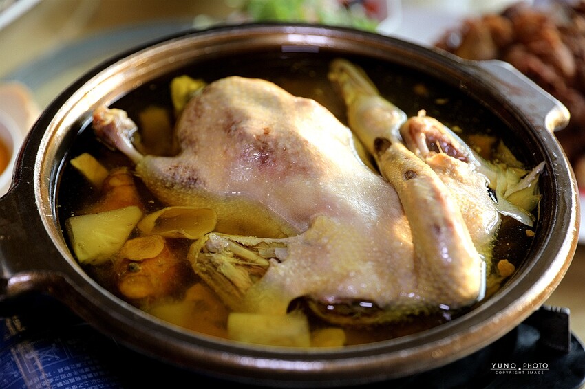 這個私房菜也還不錯 使用大坑麻竹筍所製作的醬筍 加上鳳梨 土番鴨整整以砂鍋細火煨製6小時而成