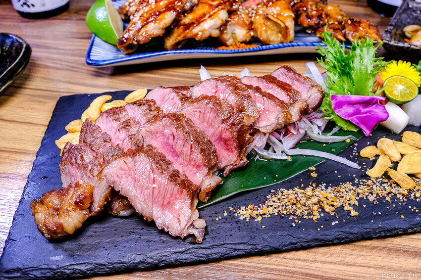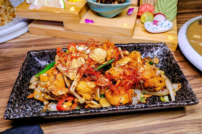 「知戶酒食」不僅僅屋內有著濃厚的日式居酒屋氛圍,在餐點酒餚上也下足功夫,嚴選海鮮搭配出一道道可口美味的餐點,像是綜合一品盛合刺身、干貝海膽堡、烤生蠔滋味鮮美,擺盤也很上相,搭配紫蘇蝦餅、酥炸一口小螃蟹、香煎安格斯牛、雞腿肉串燒這類下酒菜,甚至在熱炒店才有機會吃到的香爆肉絲雨來菇,都讓人吃得津津有味,還有野格可可布丁這類具有甜點店水準的酒感甜食可以點,不得不說夏日夜晚三五好友相約在這聚餐小酌真的讓人很盡興阿~