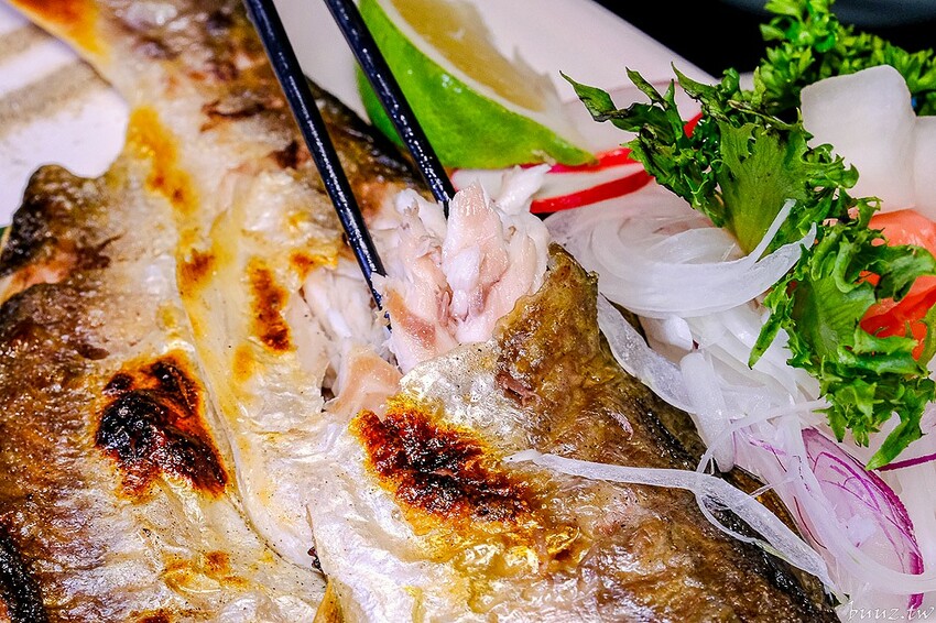 喜歡吃烤魚的朋友,可以點上一尾「鹽烤午仔魚」慢慢享受,將午仔魚對剖,灑點鹽巴炙烤到金黃微焦的模樣。