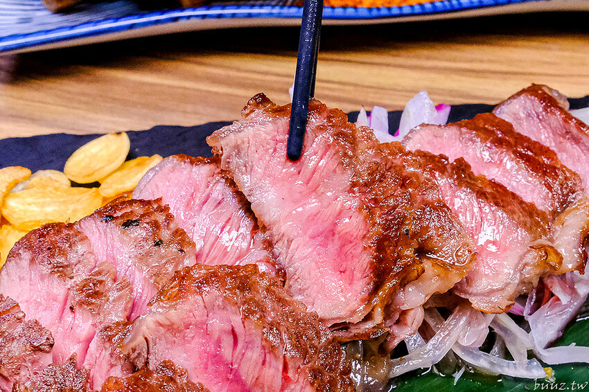 吃完了海鮮接下來換美味的牛肉,「香煎安格斯牛肉」將安格斯牛肉表面煎烤至焦香程度,中間還是呈現粉嫩粉嫩的色澤,讓人看了口水直流。