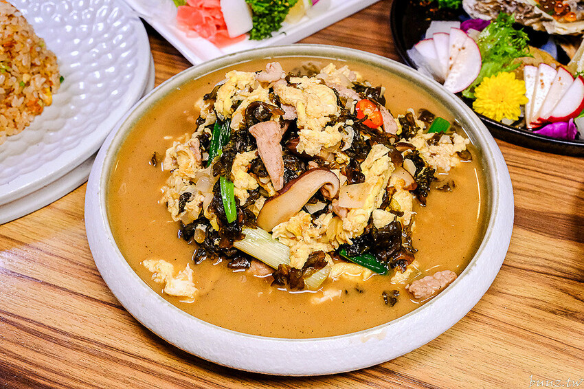 雨來菇的甜味加上蛋香,配上海茸的口感,鹹淡調味適中,淋在炒飯上真的很下飯,讓人忍不住想多扒兩口飯。
