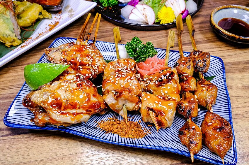 再來這盤是雞肉串燒,裡面有醬燒G屁股串、醬燒雞腿肉串及醬燒二節雞翅串,每一份都是兩串。
