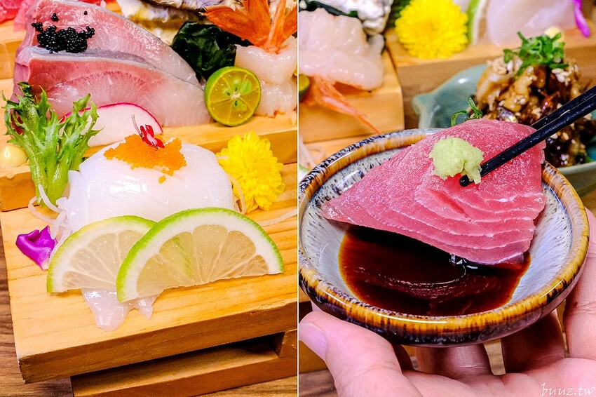 青甘海味明顯在魚子醬點綴襯托下更顯甘甜,花枝非常的彈牙有咬勁,鮪魚跟旗魚沒有筋,刺身吃起來相當柔軟挖點芥末沾醬油吃相當甜美。