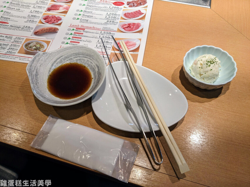 ▲每人會先送上烤肉醬和馬鈴薯泥,馬鈴薯泥使用沙拉醬攪拌吃起來很清爽。