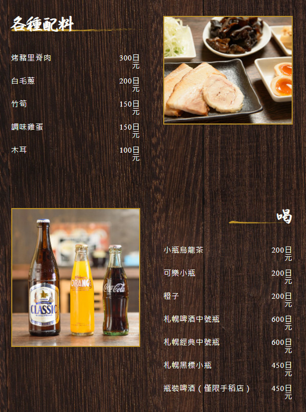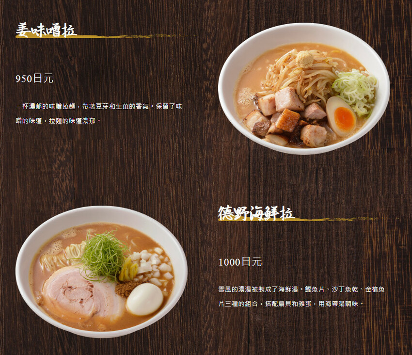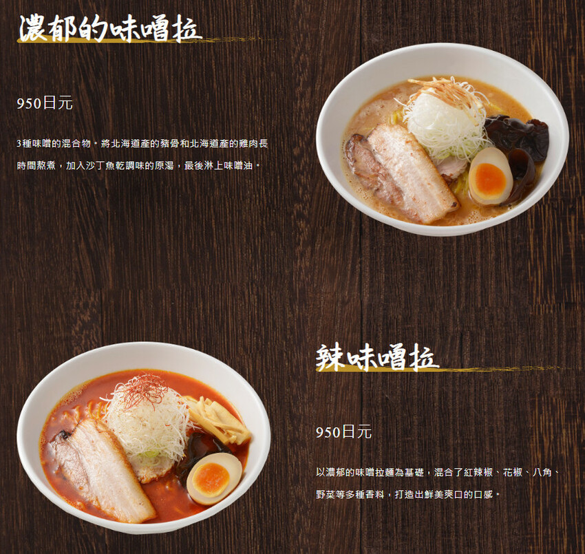 ▲麵屋雪風菜單:店內必點招牌是味噌拉麵和雞湯拉麵這兩種。