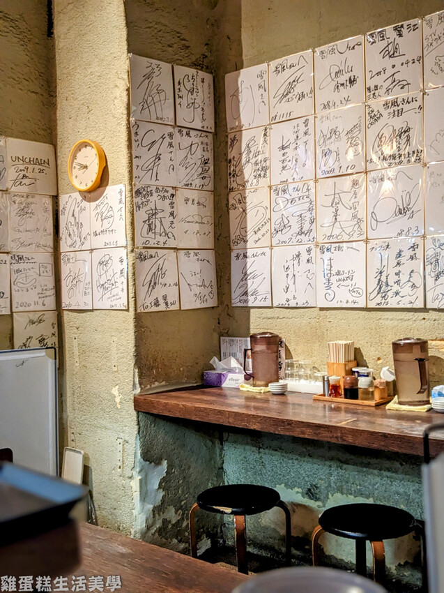 ▲店內座位不多,只有一個L型吧檯用餐座位和後面兩張座位,難怪常常造成排隊盛況,牆上有滿滿名人的簽名。