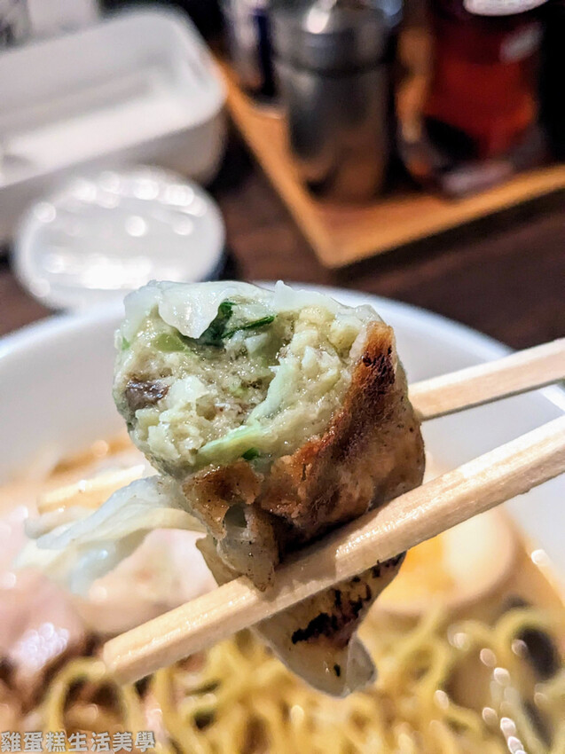 ▲水餃內的餡料極為飽滿,豬肉肥而不油,兩個人點六顆搭配拉麵份量剛剛好。