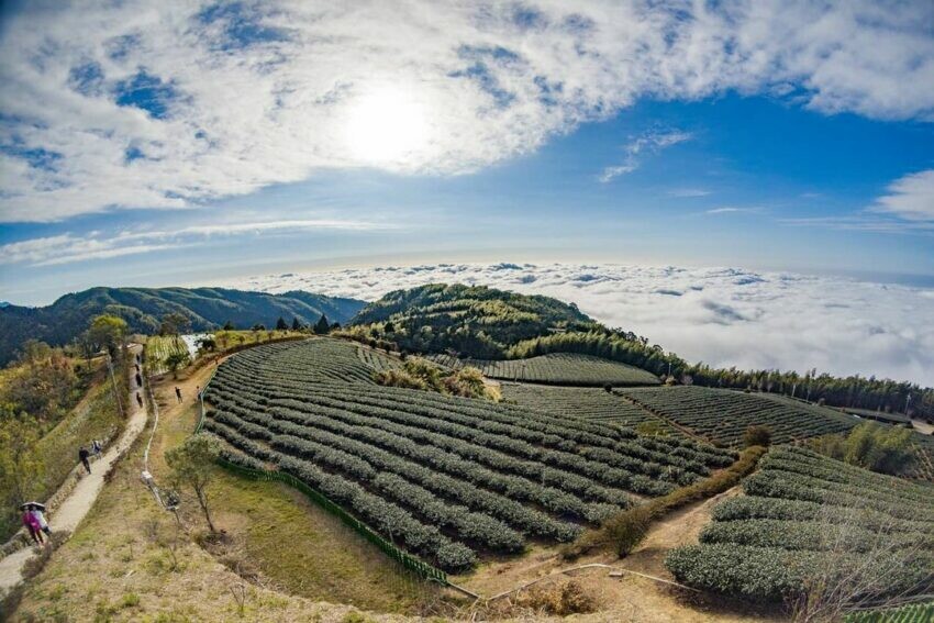 雲嶺之丘座落在雲嘉南黃金交界的山嶺之上,擁有絕佳的眺望平台,遠方的山巒被雲海層層淹沒,近處的山坡則種滿油亮的茶葉,登頂之時,無不被眼前美景震撼,可以直接開車抵達,適合懶人旅遊!若想健走流流汗也可以選擇走杉林步道,從步道一路往上走是經過修繕的石板階梯,緩步而來吸收林間的芬多精,被筆直矗立的竹林環繞,被鮮豔的花朵簇擁向前,涼風吹拂下感受大自然的美好,令人心曠神怡。