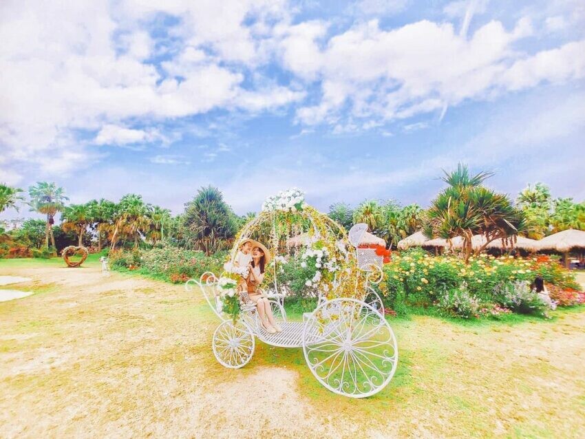 有著全台最大規模的南洋風情建築,放眼所見是純白沙灘與竹編躺椅,園區腹地廣大,結合了許多裝置藝術、庭園造景,可以互動式打卡拍照。觀光工廠從餐廳、遊樂到精緻伴手禮一應俱全,讓遊客彷彿置身峇里島度假。每年3~5月和11~1月是玫瑰花季,大片玫瑰園盛開爭奇鬥豔、薰香滿溢,紅白相間營造出浪漫氛圍。熱情陽光下,不妨一起坐在茅草涼亭,喝杯南洋椰奶,度過充滿異國風情的美好週末吧!