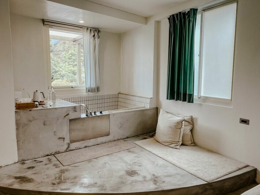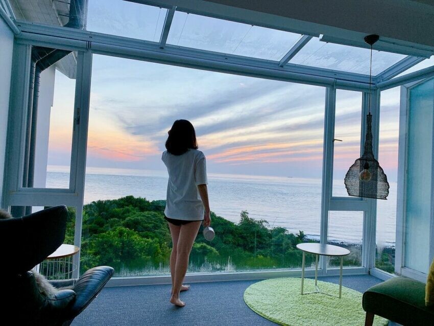 不想住星級飯店那就到新北近郊與大海環山為臨吧,位在金山的【暮光民宿】是一家蓋在面海的小山丘無人度假新北民宿,純白建築自帶小池塘的私人招待所非常顯眼。每間客房都有整面落地窗,變化萬千的海景就是天然的液晶螢幕,房內簡約兼具設計感的傢俱及擺設等樣樣都是精挑細選,說是拍偶像劇的場景一點也不為過。