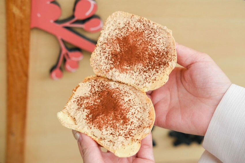 ▼提拉米蘇居然也能變成車輪餅,中間冰涼像冰淇淋般的內餡,擁有苦甜的大人系咖啡香氣,吃起來相當清爽不膩口。