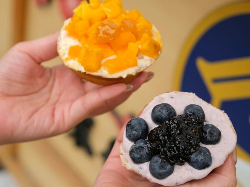 ▼充滿水果香的微夏光芒和藍心莓之夜,將當季的果物融入車輪餅中,微夏光芒以新鮮愛文芒果搭配自製水果慕斯,冰涼內餡中咬的到酸甜芒果肉,藍心莓之夜則是大方放滿超多藍莓和藍莓醬,在嘴裡打造出逼逼波波的爆汁敢,兩款的果香味層次都相當豐富,清爽香甜不膩口!