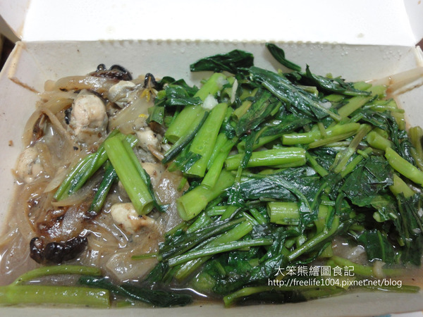 蚵仔 120元 ,搭配空心菜{ 豆芽、、高麗菜沒了