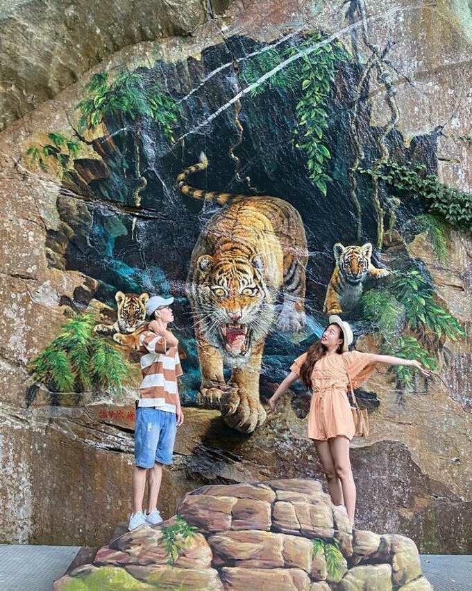 利用不同角度的視覺錯差,展現二度與三度空間激盪的3D立體虛實藝術。讓你零距離與兇猛可怕的老虎拍照,或是安穩地站在澎湃急促的川流拍照喔!