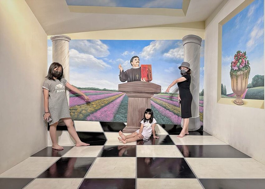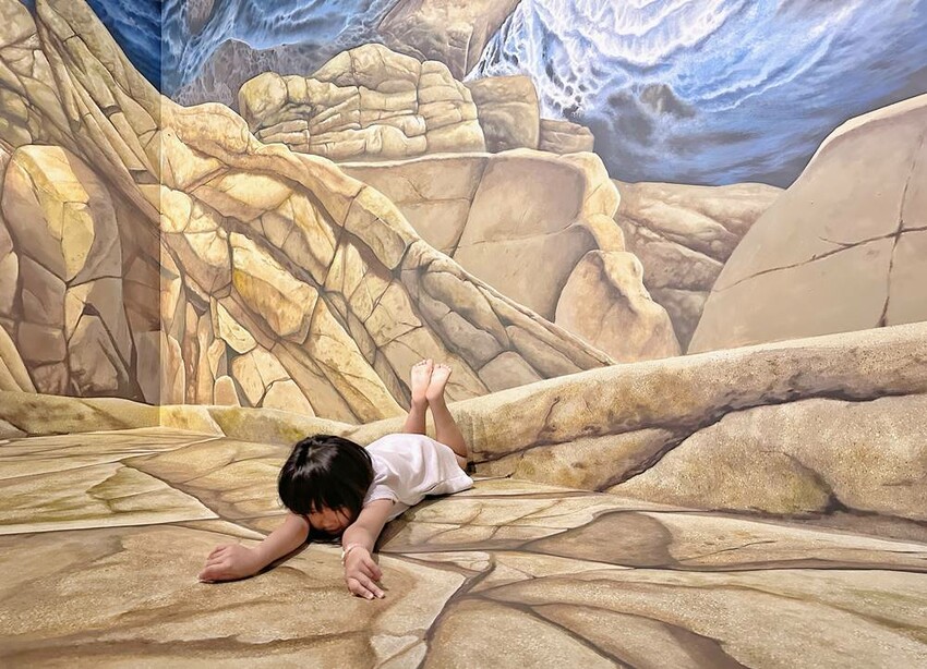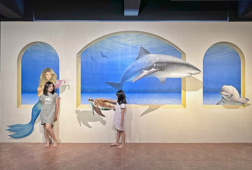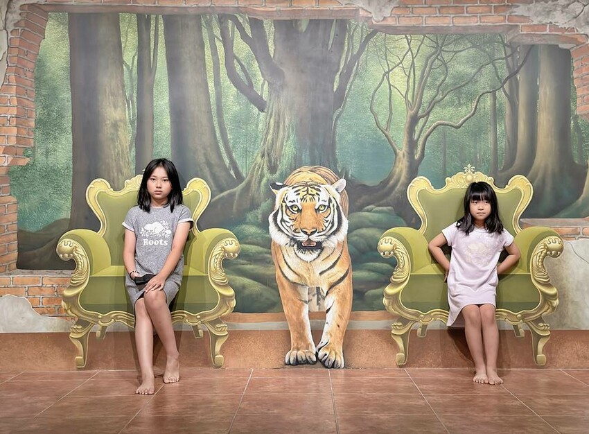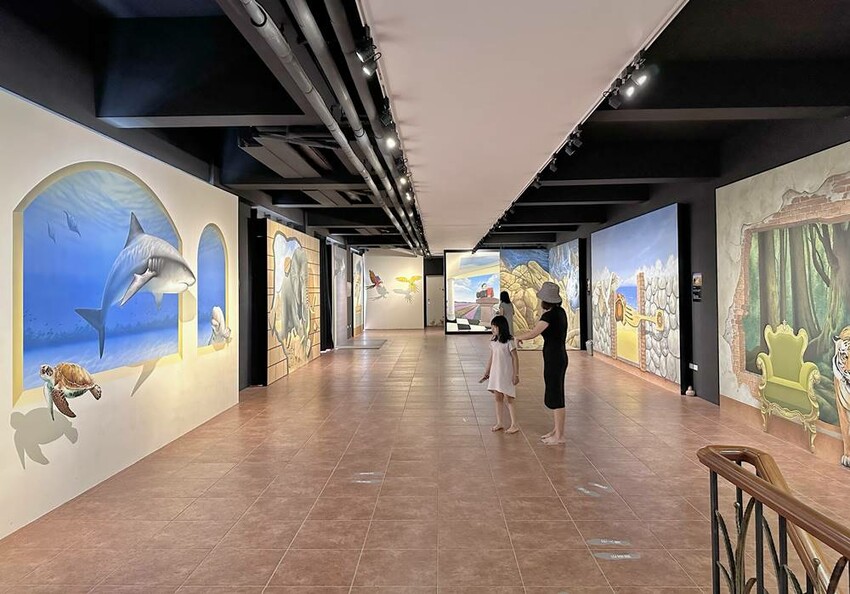 要前往上二樓的朋友們可要注意囉!不能帶任何的包包且要脫鞋才能上樓,包包物品都可以寄放在櫃台。來到二樓的彩繪空間僅週六日限定開放,在這可看到一幅幅繽紛又生動的彩繪畫作。當然要拍出生動又立體的照片,就要朋友們發揮自己的想像力或是參考每幅彩繪畫作旁的範本來拍照。真心說我們全家人在二樓的彩繪空間就花了不少時間在拍照。