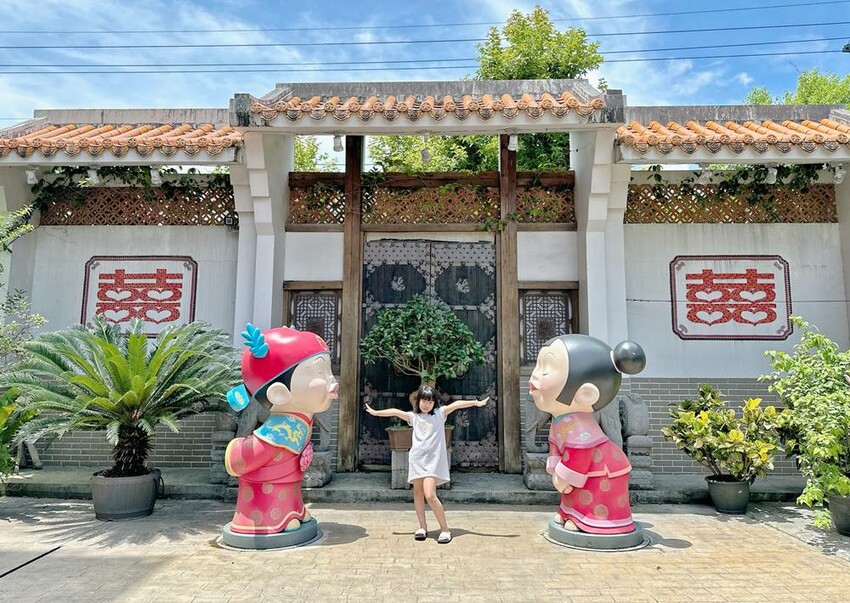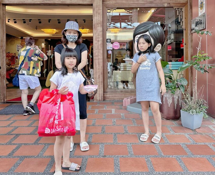 最後一個戶外造景,可讓Ann和榜哥拍得很開心,囍氣古裝的新娘和新郎啾啾的模樣真的好可愛!而在我們準備離開宜蘭餅發明館當然也是大包小包的買了不少伴手禮回家,真心推薦大家若有來宜蘭蘇澳吃吃喝喝,不妨將宜蘭餅發明館列入口袋名單,這裡可是有吃有玩又很好拍照的免費觀光工廠。