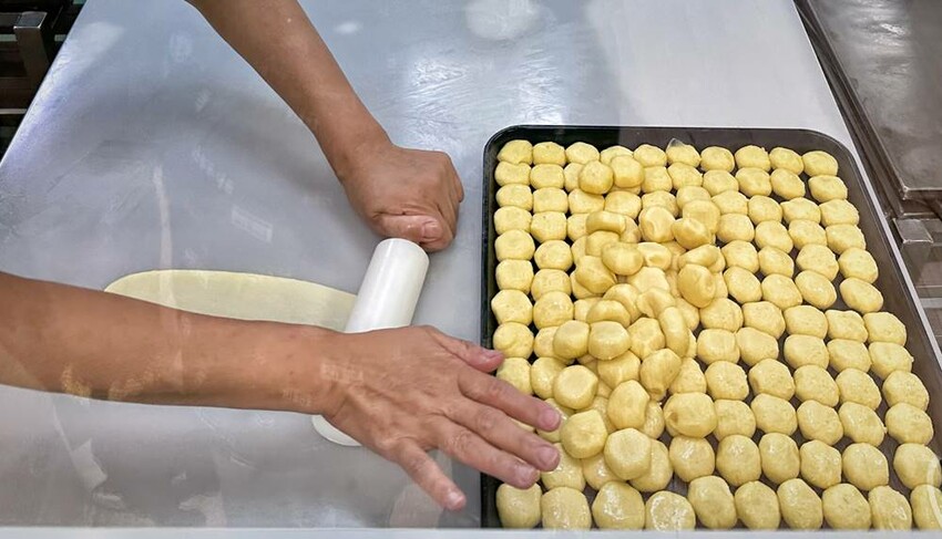 逛了半圈後當然也不能錯過走上二樓,二樓除了有DIY教室以外還能在這看到2條高科技無塵生產線及產品研發室,不時都可以看到員工們認真製作宜蘭餅的製程。