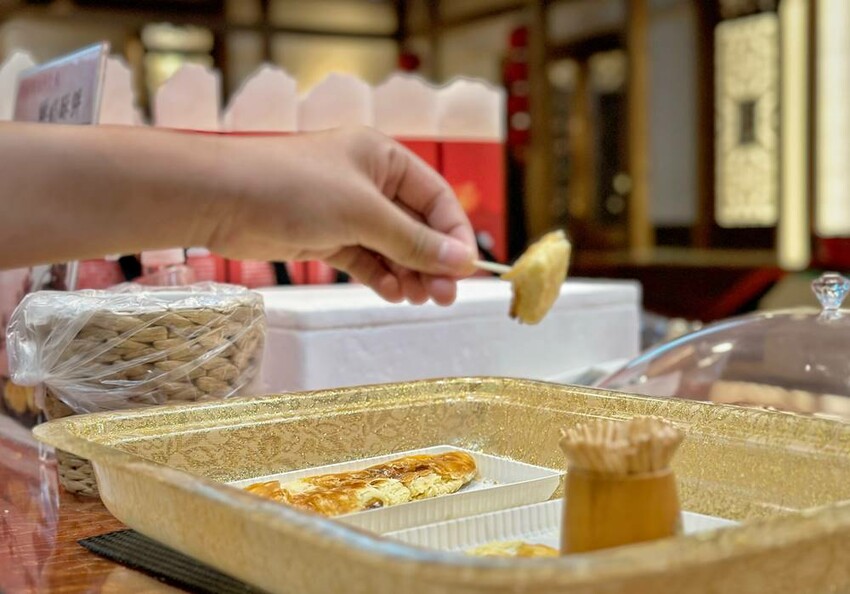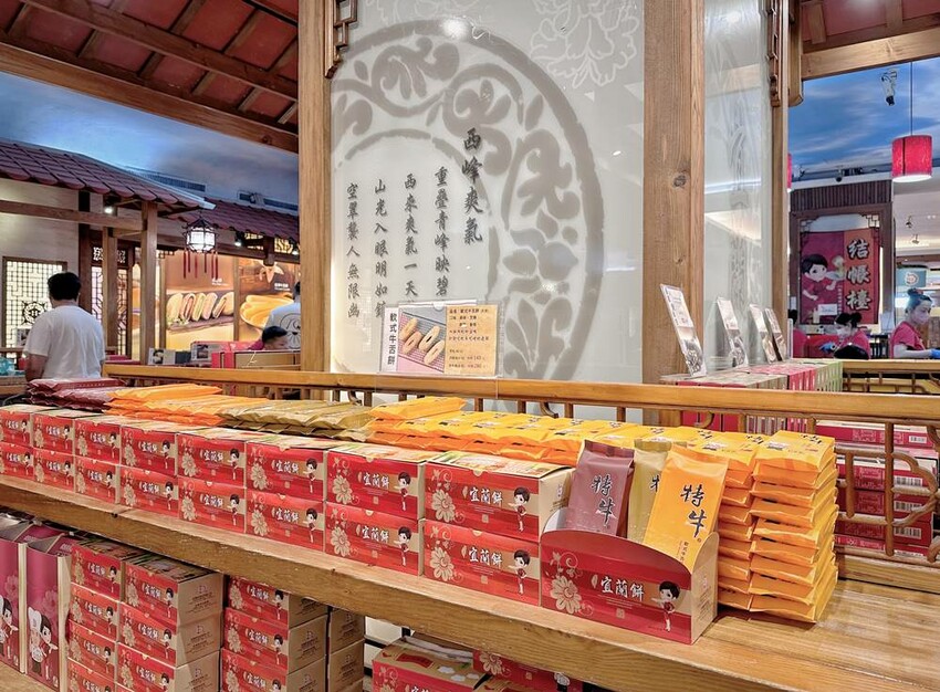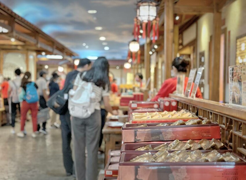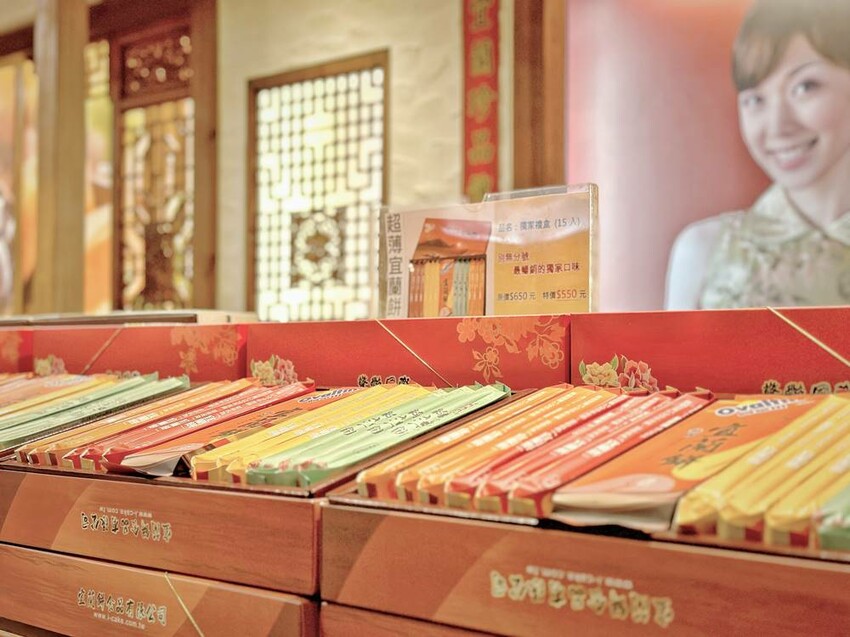 依循著指標當然就會走到一樓的門市販售區,門市販售區可是販售著不少宜蘭餅、牛舌餅、糕餅等等,且都有提供試吃,試吃喜歡再買都可以,完全不會強迫推銷。
