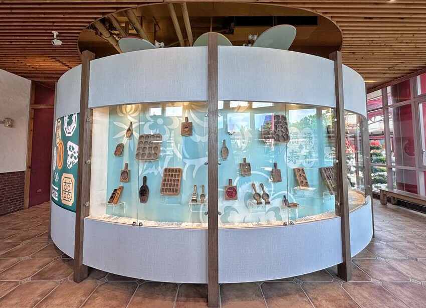 而來到宜蘭餅發明館當然不能錯過主館,在主館內設有展示區、故事區、DIY教室以及門市販售區。在展示區可看到館方蒐藏了不少早期製作中式糕餅的主要模具,最古老的器具可有將近300年的歷史;當然在這也能了解到宜蘭餅創辦人的傳奇故事等。